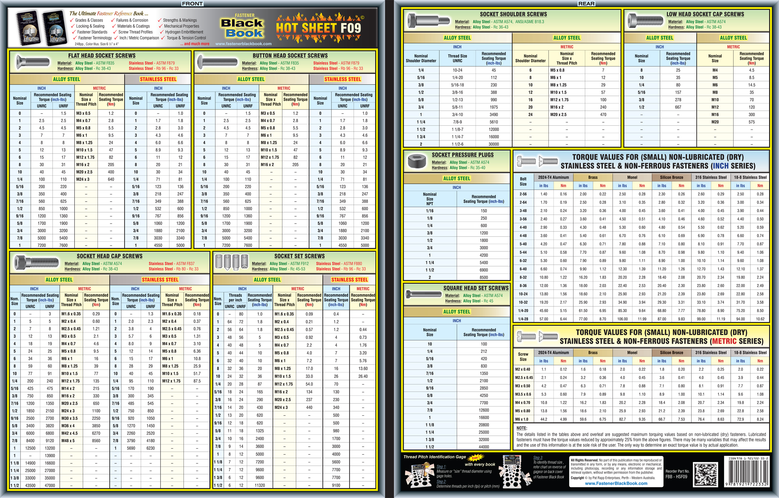 Each Fastener Black Book “HOT SHEET” is a simple format reference tool specifically focused on certain subjects as listed below.